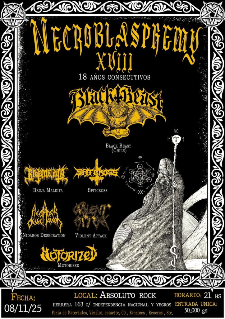 BRUJA MALDITA, SPITCROSS, NIDAROS DESECRATION, VIOLENT ATTACK, MOTORIZED.