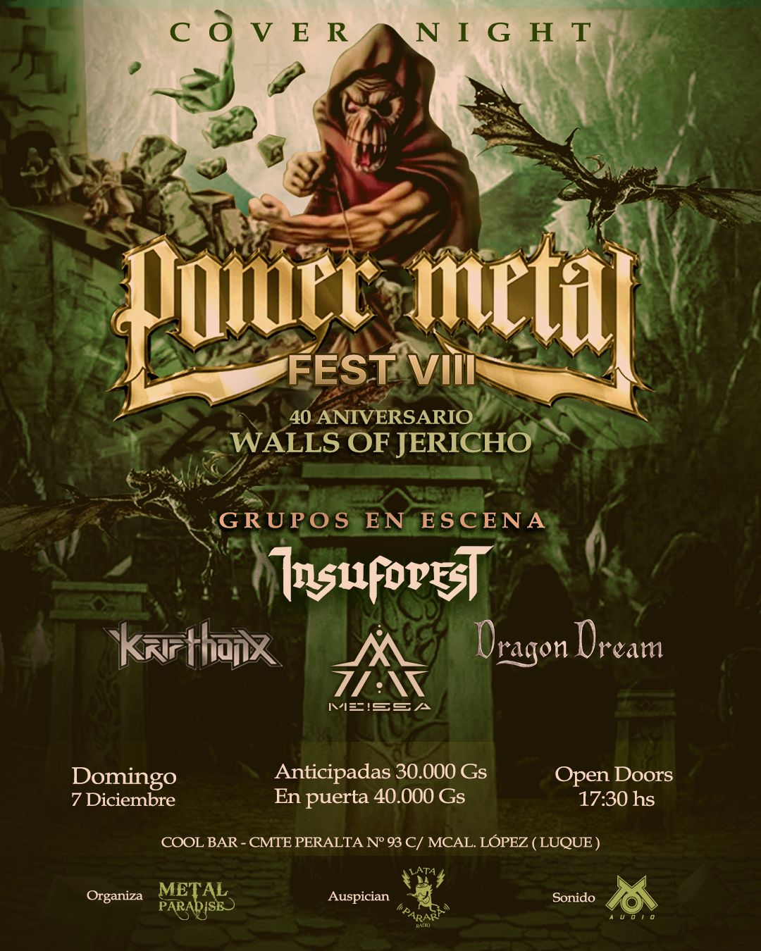 POWER METAL FEST VIII *40 Aniv. Wall of Jericho* 54 Days 0 Hours 60 Minutes Date 07/12/2025 Time 17:00 Location LUQUE PARAGUAY Venue COOL BAR Se viene de vuelta otra edición mas.!!!Para agendar !!